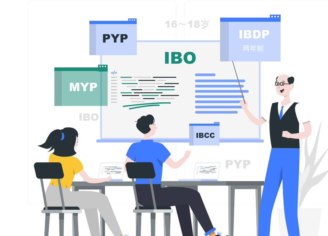 IB课程于1967年由国际文凭组织IBO(International Baccalaureate Organization)在瑞士日内瓦成立设计,分为几个不同阶段的课程,分别是小学项目(PYP)、中学项目(MYP)、国际文凭大学预科项目(IBDP)和国际文凭职业教育证书项目(IBCC)。我们通常说的IB课程,全称是国际文凭大学预科课程(International Baccalaureate Diploma Programme,简称 IBDP),是一个两年制、对象为16至18岁学生的课程,相当于在国内的高二和高三是学习的课程。